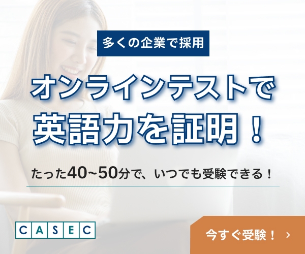 CASEC(キャセック)は、オンラインで英語コミュニケーション能力を正確に判定できるテストです。忙しい学生・社会人の方でも気軽に受験でき、英語力の現状把握や学習計画に役立ちます。